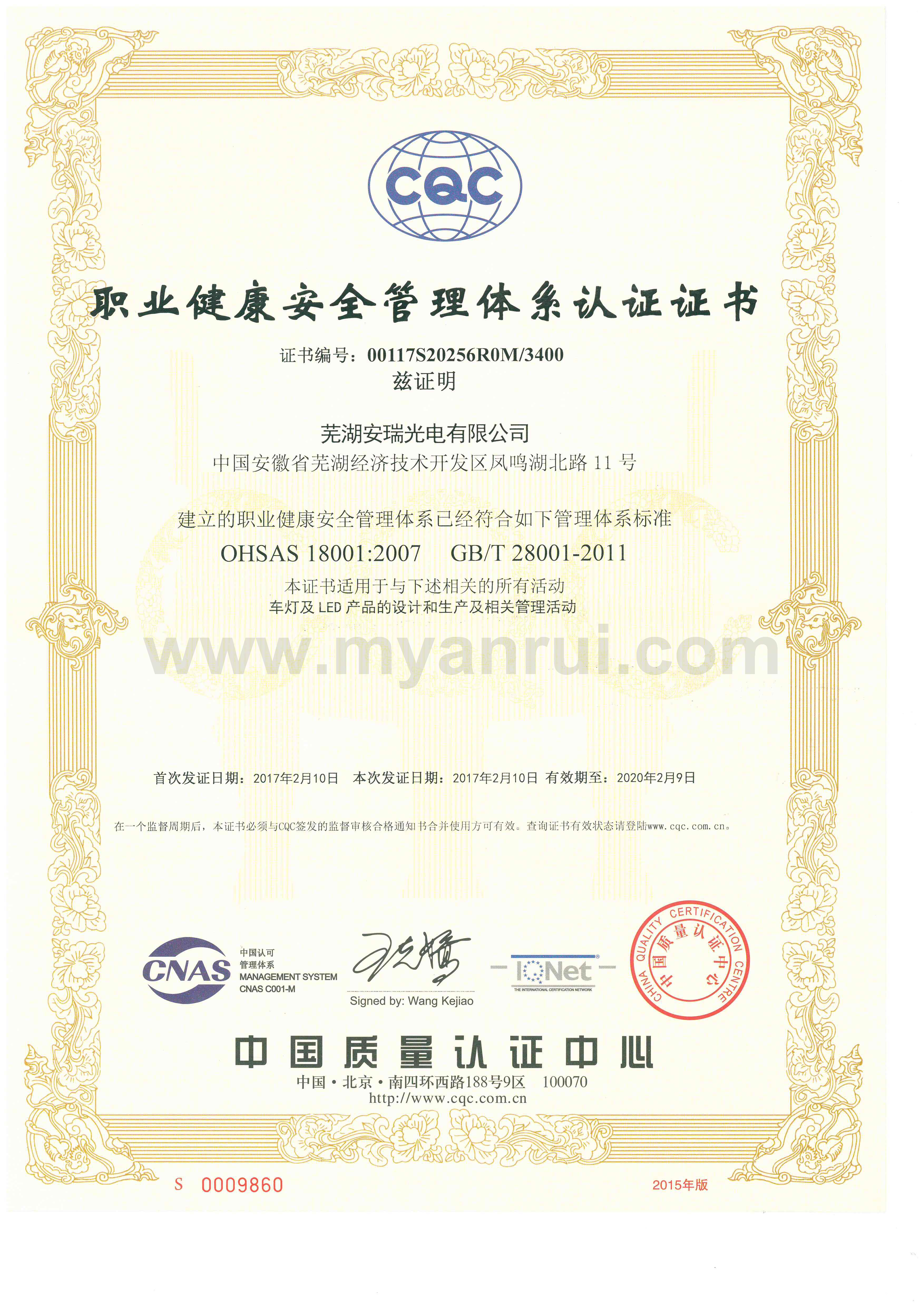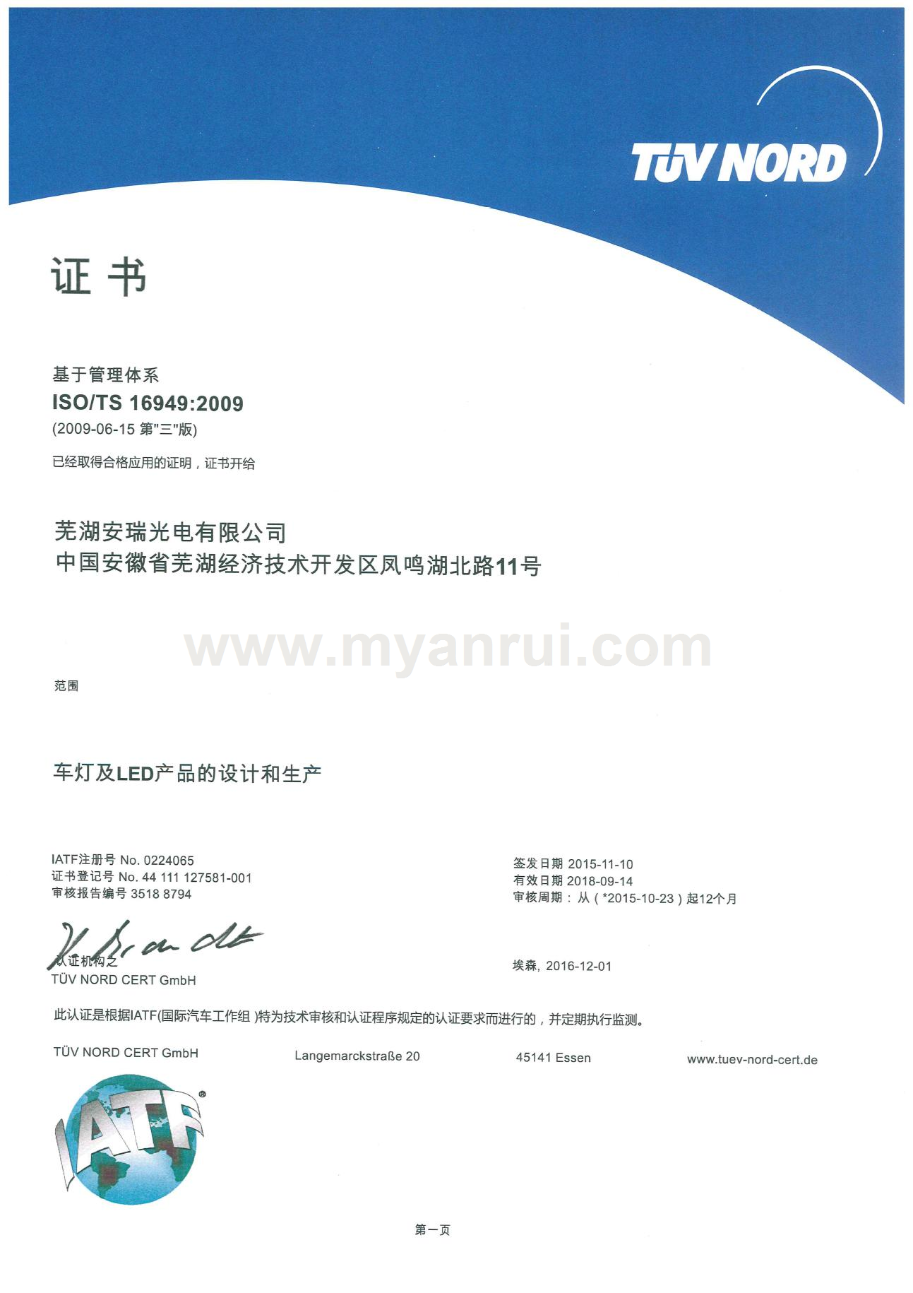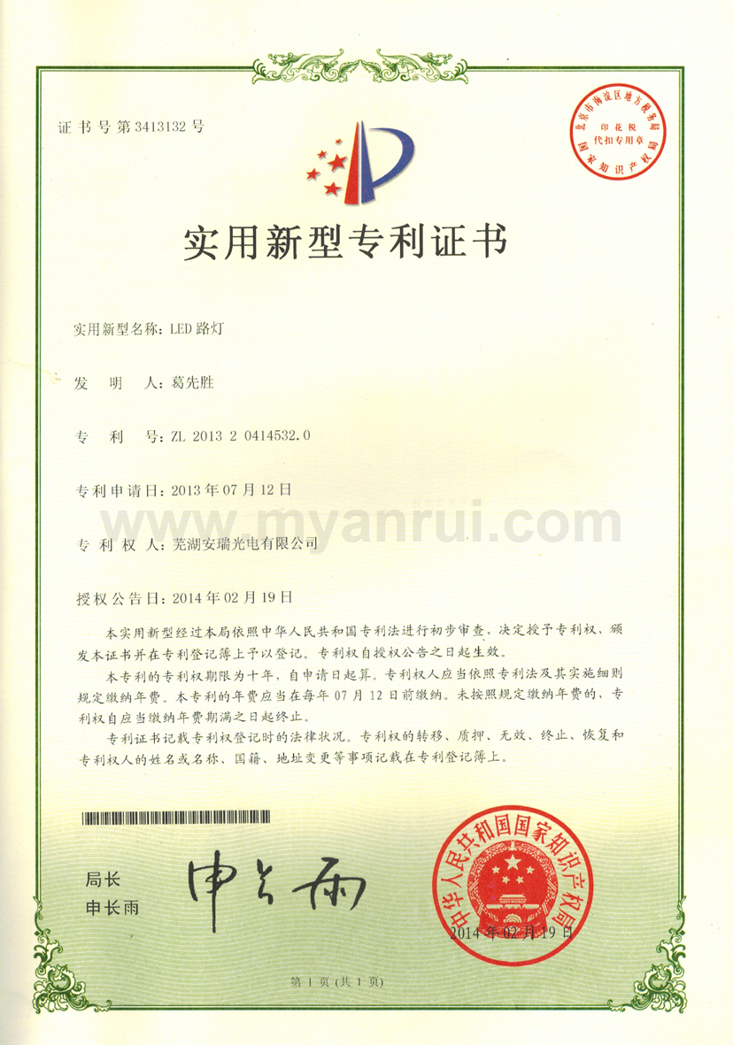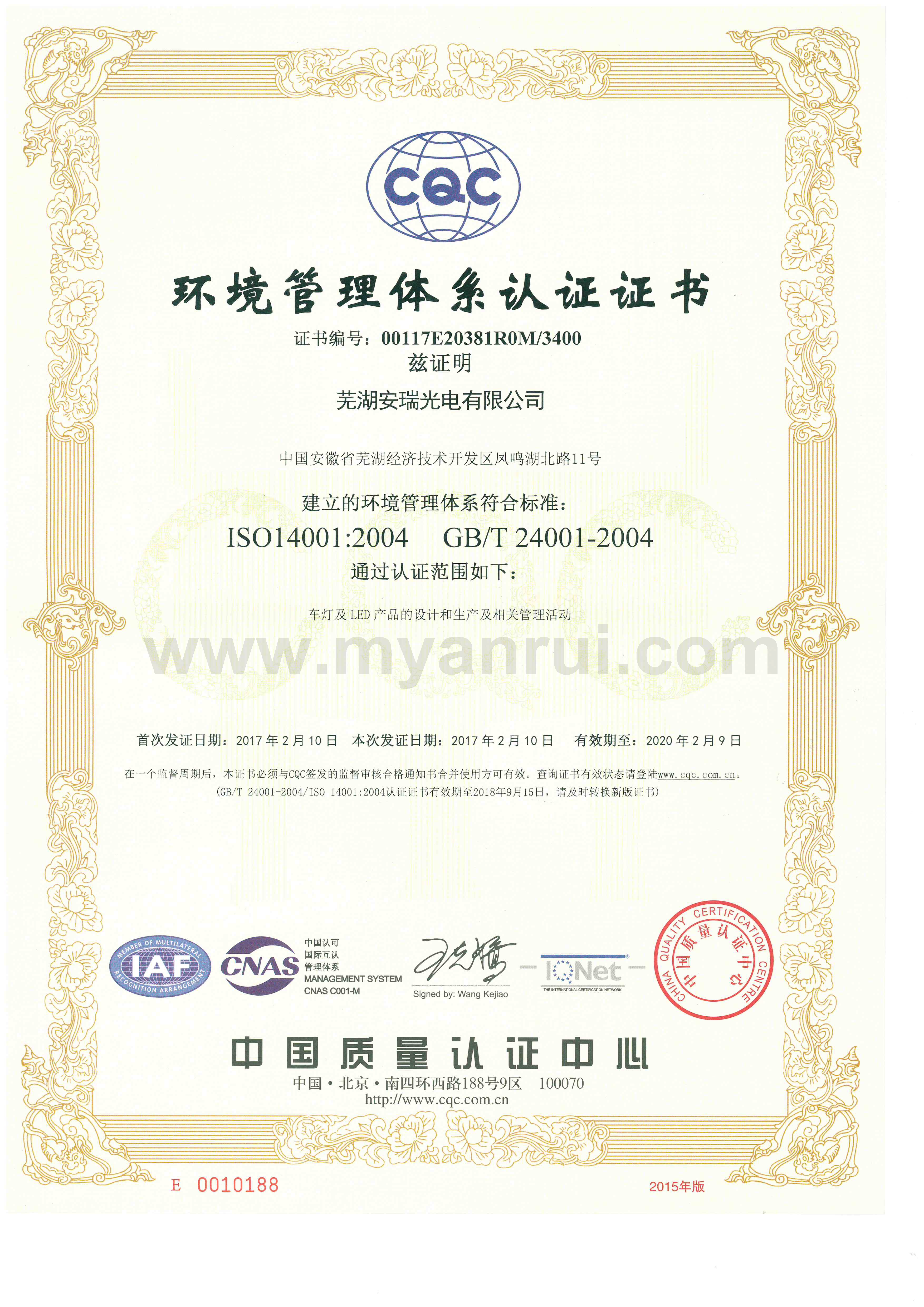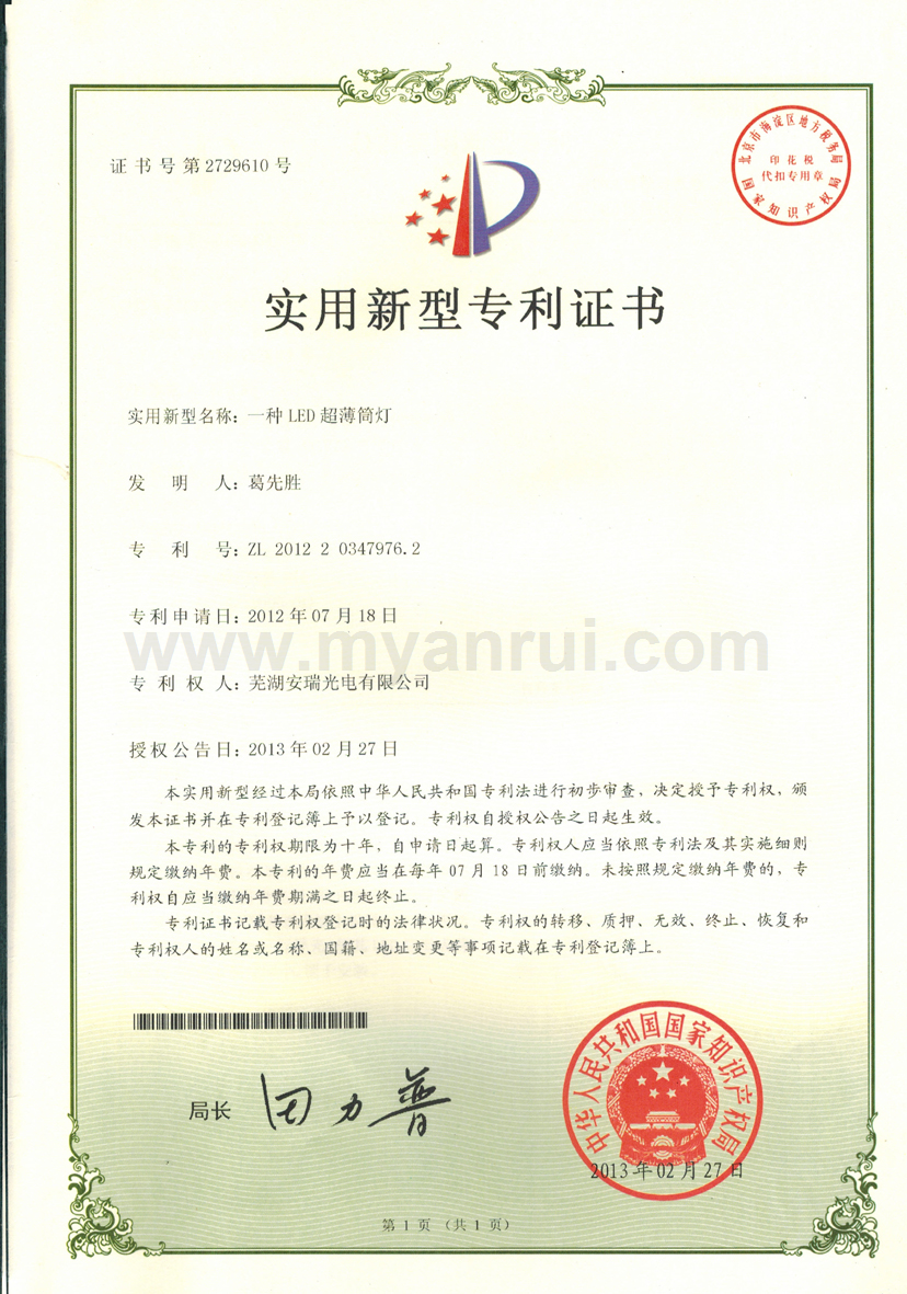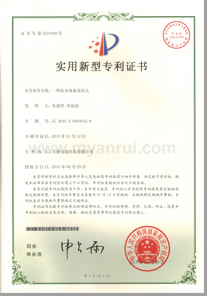 科技成果 1、公司获得专利 (1)专利证书----色温可调的LED汽车灯 专利号:ZL 2011 2 0198359.6 (2)专利证书----LED头灯冷却水散热装置 专利号:ZL 2011 2 0194834.2 (3)专利证书----高效率LED汽车近光前照灯 专利号:ZL 2011 2 0201513.0 (4)专利证书----一种超薄LED筒灯 专利号:ZL 2012 2 0347976.2 (5)外观设计专利证书----汽车前照灯(SUV) 专利号:ZL 2012 3 0159365.0 (6)实用新型专利证书----LED路灯 专利号:ZL 2013 2 0414532.0 (7)获得新型专利证书-一种汽车灯具调光装置 专利号:ZL 2015 2 055 1193.X (8)获得新型专利证书-一种防水线束连接头 专利号:ZL 2015 2 0020032.8 (9)获得新型专利证书-一种车灯线束密封结构 专利号:ZL 2015 0 0020033.2 (10)获得新型专利证书-一种汽车导光条的入光端面安装结构 专利号:ZL 2015 2 0709549.8 (11)获得一种汽车导光条安装结构-一种汽车导光条安装结构 专利号:ZL 2015 2 0550101.6 2、获得3C认证证书 (1)中国国家强制性产品认证证书 证书编号:2015091109006528 6、获得高新技术企业证书 证书编号:GR201434000815 7、2017年4月获得环境体系认证证书 证书编号:00117E20381ROM/3400 8、2017年4月获得职业健康安全管理体系认证证书 证书编号:00117S20256ROM/3400 |